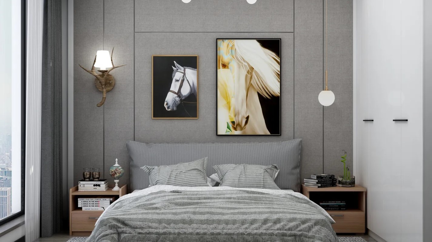 本案設(shè)計主題為現(xiàn)代簡約黑白灰,在材料的選擇和色彩的搭配上則更加注重各元素之間細膩微妙的變化和對比,綜合動物系列的掛畫和飾品,在推崇自然、高雅的生活情趣中,更加強調(diào)人性化的主導(dǎo)地位,突出設(shè)計的文化內(nèi)涵。