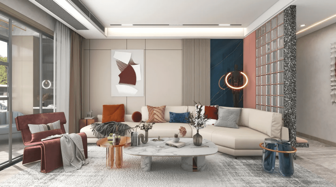 現(xiàn)代輕奢,輕于形,奢于質,造型輕盈不厚重,材質奢華有細節(jié),并用撞色和跳色讓整體更有生機。色彩浸潤,品質生活!
